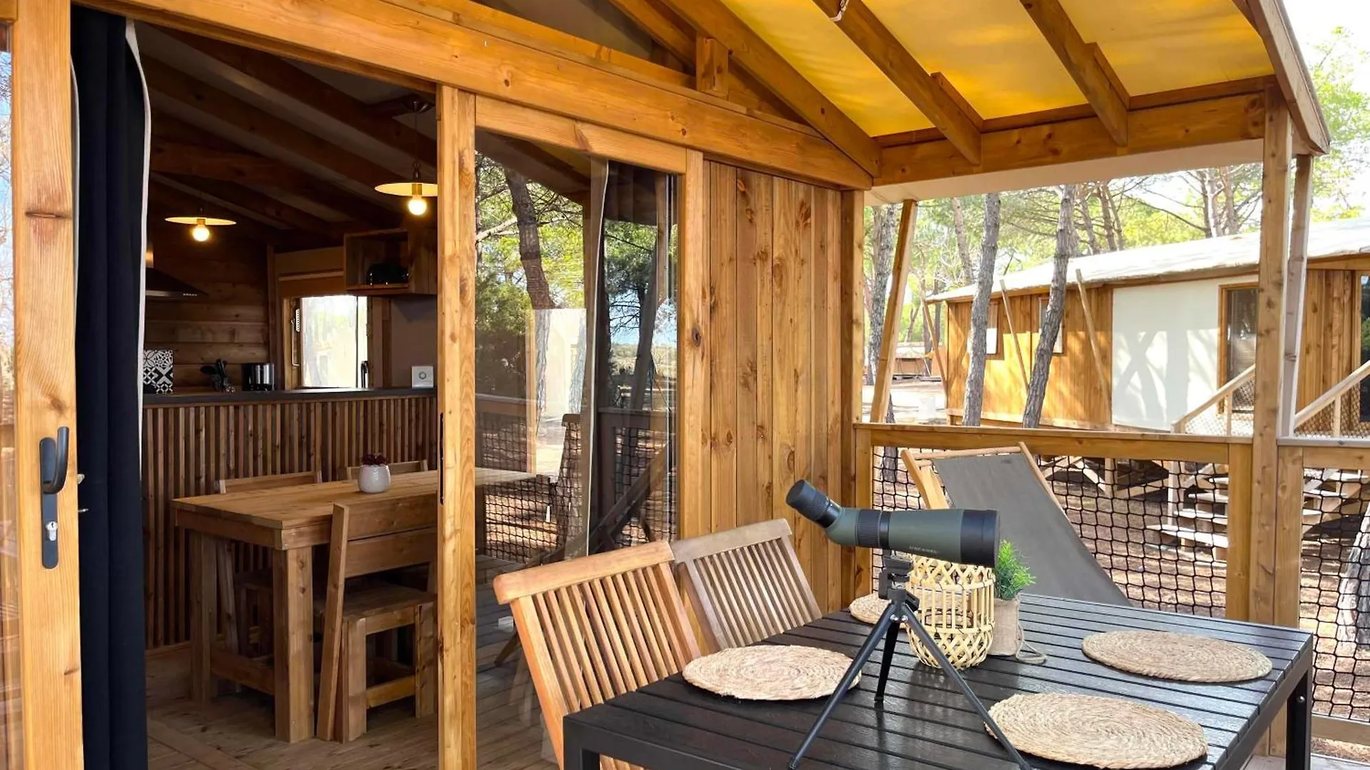 De gesitueerde in Agde Camping La Tamarissiere Hotel beschikt over een kitchenette en een terras met uitzicht op de tuin. Ze hebben een badkamer met een apart toilet en een douche.